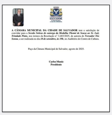 Homenagem ao nosso vice-presidente ,Luiz Trindade, que recebeu a prestigiada Medalha Tomé de Souza ,da Câmara Municipal de Salvador