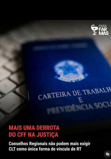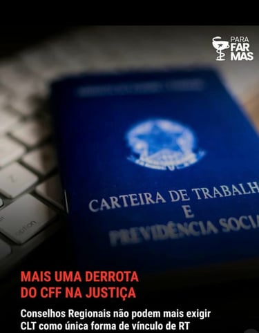 A Justiça Federal derrubou mais uma tentativa do CFF de impor regras fora de sua competência. A 3a Vara Federal Cível de Brasília declarou ilegal o artigo 46, $1°, da Resolução no 14/2024, que obrigava a contratação de farmacêuticos como RTs apenas via CLT. A sentença foi clara, o CFF não pode legislar sobre vínculo trabalhista, isso é competência do Congresso. A ação foi movida pels ABCFARMA, que representa o comércio farmacêutico, e demonstrou que a norma violava a liberdade de contratação prevista na Constituição e em leis federais