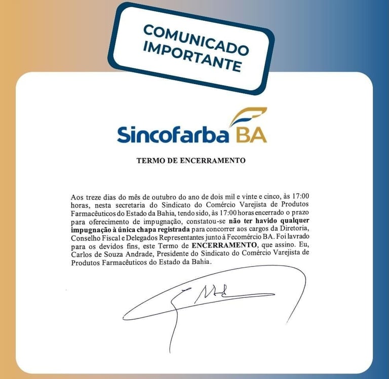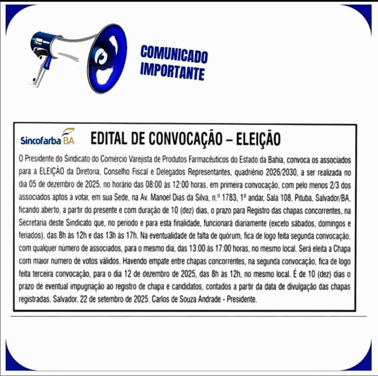 SINDICATO COM. VAREJISTA DE PRODS. FARMACÊUTICOS DO ESTADO DA BAHIA